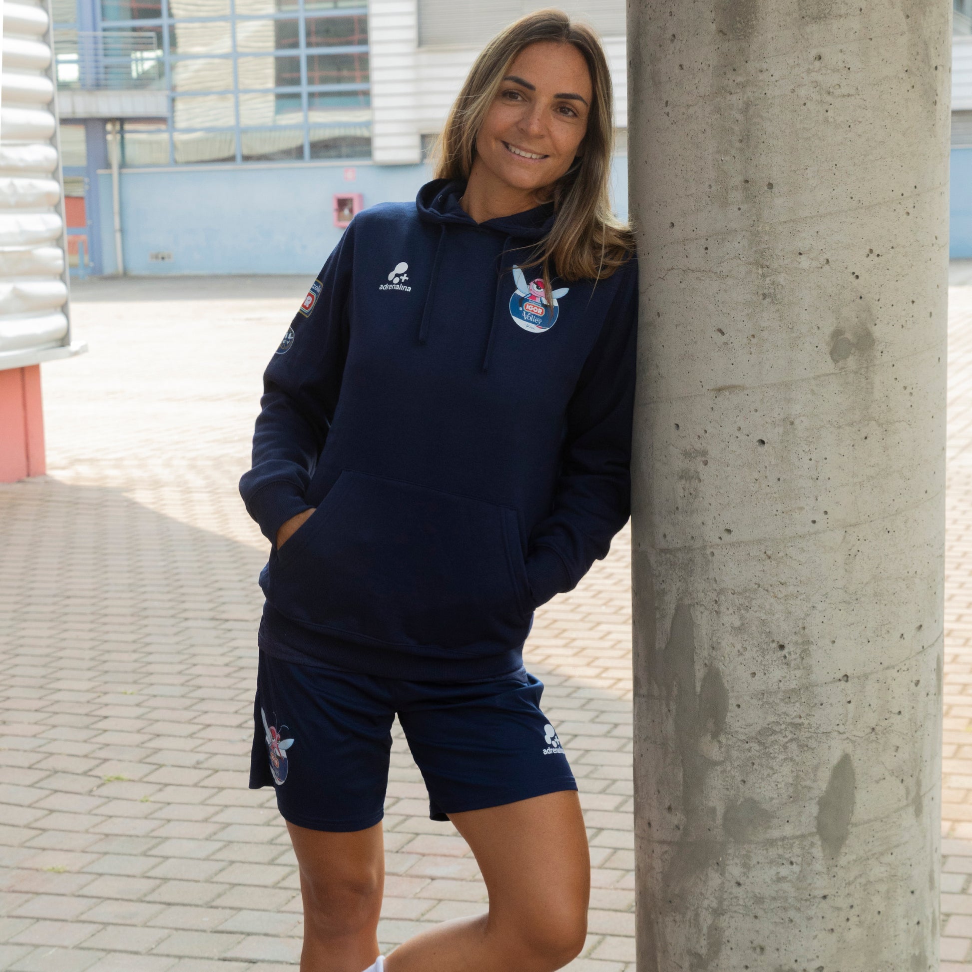 Comfort e identità si fondono nella felpa blu tempo libero Igor Volley, pensata per accompagnare atlete e tifosi fuori dal campo. Realizzata in morbido tessuto felpato, offre calore e comodità senza rinunciare alla praticità.
